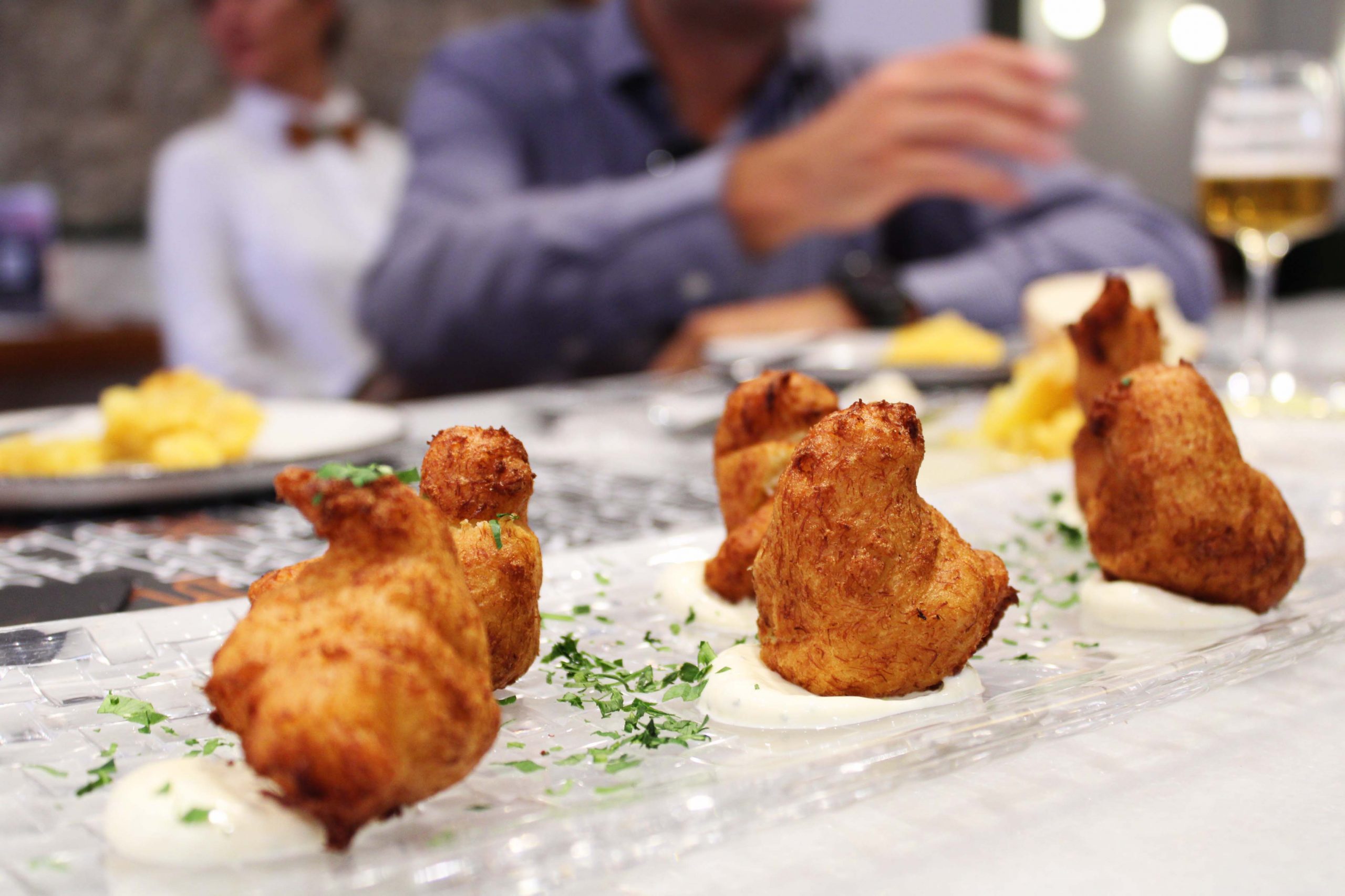 Dentro de las propuestas de maridaje, la vinoteca incluye champagnes, cavas y espumosos para acompañar los productos de la marisquera o atreverse con propuestas menos conocidas, pero muy experienciales. El broche de oro a la experiencia lo pone nuestra coctelería, con una selección tradicional complementada con propuestas originales de la casa.